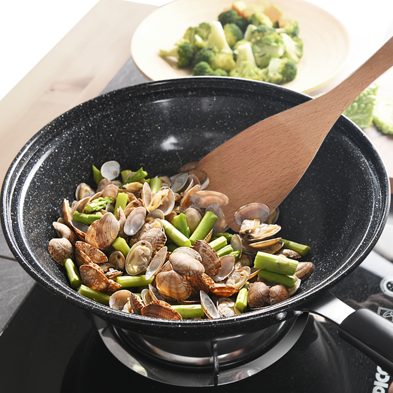 4、麥飯石微壓炒鍋質(zhì)脆易破,運(yùn)用時(shí)應(yīng)輕拿輕放。