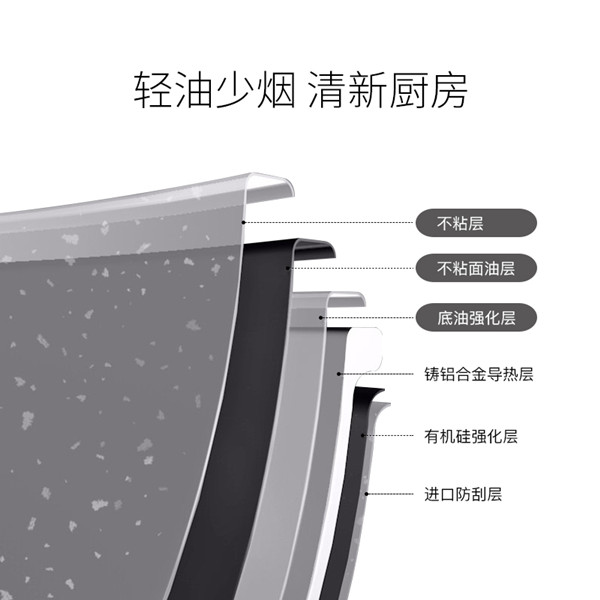雙層復(fù)底設(shè)計(jì),烹飪節(jié)能省油,炒菜不沾無(wú)煙,遠(yuǎn)離油煙帶給我們的困擾。
