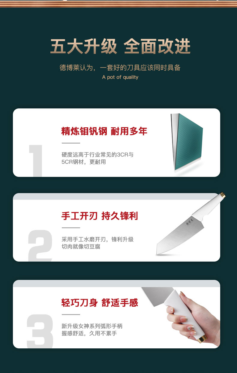 1.天生鋒利格調(diào)料理,一套有型有用的刀具讓生活變得更有格調(diào)和質(zhì)感,用高顏值的廚具打造出彩廚房。