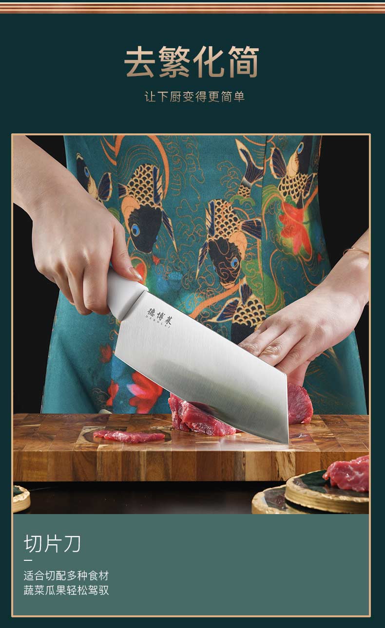 3.專刀專享切出主廚儀式感,冷段工藝增強鋼材韌性,耐磨抗腐蝕,手柄采用人體工學(xué)設(shè)計,握感舒適久握不累。