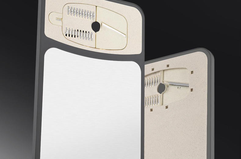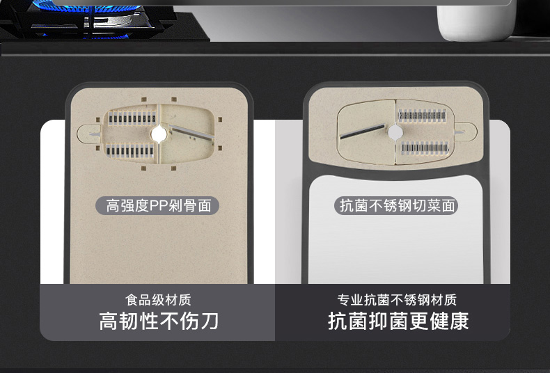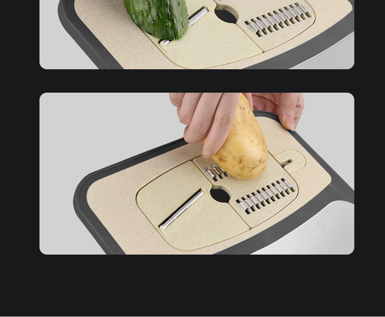 私家開(kāi)模獨(dú)特設(shè)計(jì),多功能菜板可削皮,可切絲,可磨刀,多種功能集合于一身。