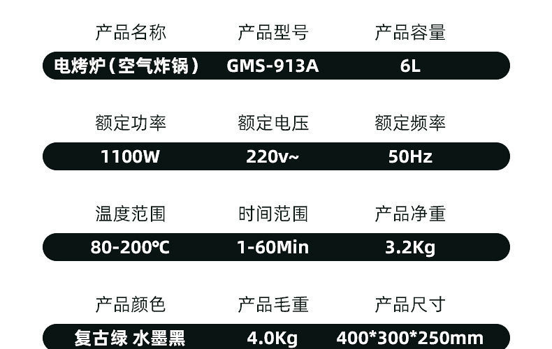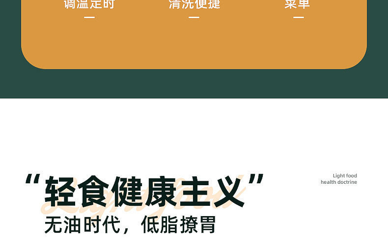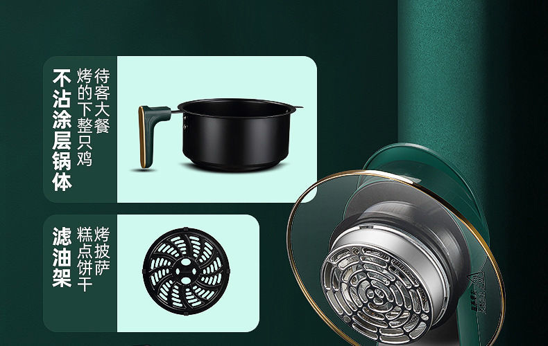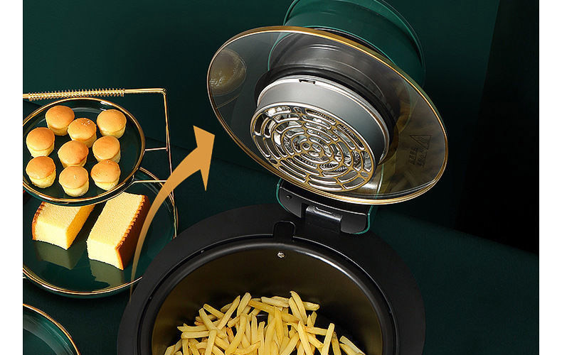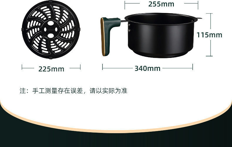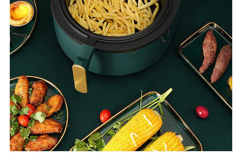 4、空氣炸鍋有最高達200度的恒溫裝置,是要設(shè)置好時間就不會產(chǎn)生傳統(tǒng)油炸過因為油溫太高產(chǎn)生食物焦糊甚至著火的情況。