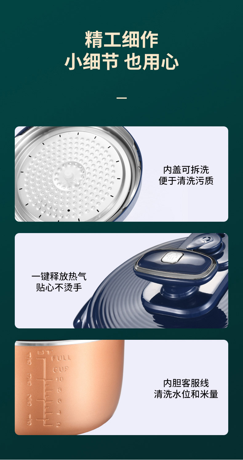 4、電壓力鍋廠家告訴大家應(yīng)注重安全性。時(shí)下,小家電的安全性普遍較差,選購(gòu)時(shí)應(yīng)試用,選擇在運(yùn)轉(zhuǎn)時(shí)聲音較平緩、震動(dòng)小的產(chǎn)品。注意包裝。包裝應(yīng)嚴(yán)整,標(biāo)記應(yīng)正規(guī),抗震性佳等等。