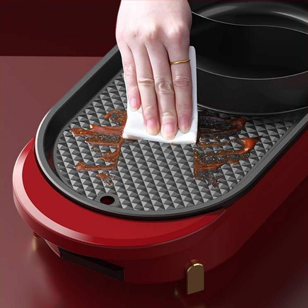 1、輕奢料理生活儀式,只能涮烤盤,雙管分區(qū)加熱雙旋扭電子溫控,清油少煙易清潔。