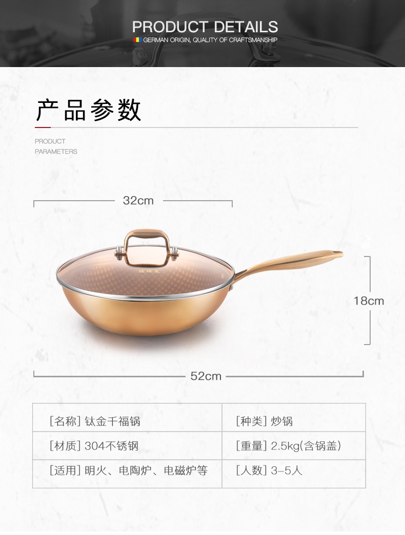 千福炒鍋是鐵鉻合金等金屬元素制作而成的,它的外形美觀,導(dǎo)熱性好,堅(jiān)固耐用,不容易出現(xiàn)油煙,能夠很好的在熱量、質(zhì)量、重量這三方面取得平衡。