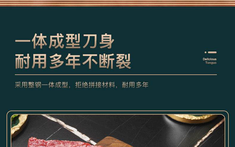 3.專刀專享切出主廚儀式感,冷段工藝增強鋼材韌性,耐磨抗腐蝕,手柄采用人體工學(xué)設(shè)計,握感舒適久握不累。